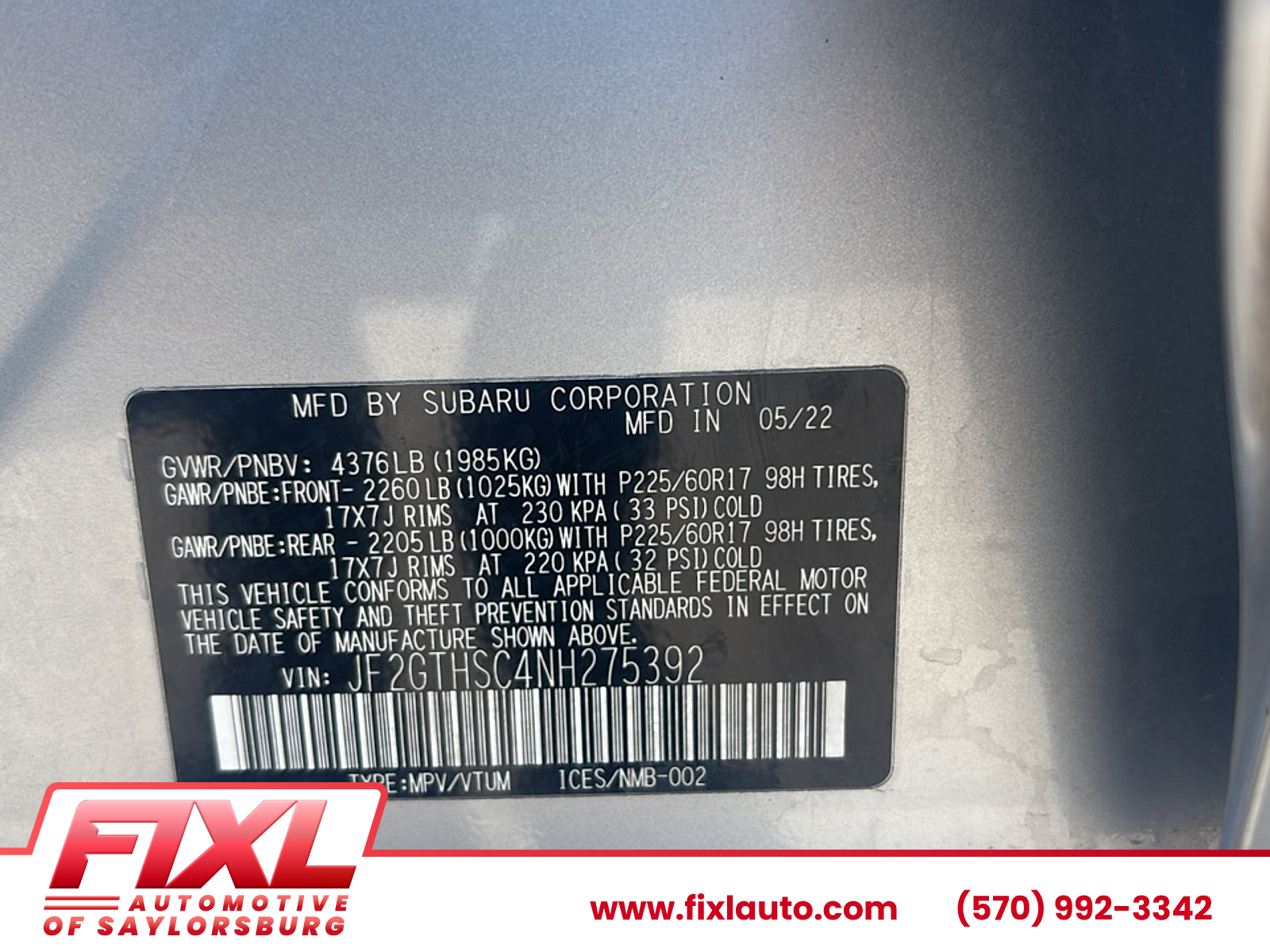 Introducing the 2022 Subaru Crosstrek, a versatile and stylish compact SUV designed to elevate your driving experience. This remarkable vehicle boasts an impressive balance of performance, practicality, and efficiency, making it the perfect companion for both urban adventures and weekend getaways. Powered by a spirited 2.0L engine, the Crosstrek delivers a responsive and smooth ride, while its all-wheel-drive system ensures confidence on various terrains and weather conditions. With an EPA-estimated fuel economy of up to 33 MPG on the highway, enjoy longer journeys with fewer stops at the pump. Inside, the Crosstrek features a spacious cabin equipped with modern technology, including a user-friendly infotainment system with a touchscreen interface, smartphone connectivity, and advanced safety features such as EyeSight Driver Assist Technology. The roomy rear seats and ample cargo space provide practicality for all your gear and necessities. With a rugged yet refined exterior design, the 2022 Subaru Crosstrek makes a statement wherever it goes. Whether navigating city streets or exploring off the beaten path, this SUV combines comfort with capability. Discover the perfect blend of adventure and functionality in the 2022 Crosstrek - where your journey awaits! We can help you find vehicles in the Bartonsville, Saylorsburg, and Stroudsburg PA area. By submitting your information, you consent to receive all forms of communication including but not limited to phone, text, email, mail, etc. Message and data rates may apply. Pricing plus tax, license, finance charges, state fees, and doc fee (subject to residency restrictions). Photos for illustration purposes only. In most cases, discounts, savings, and other special offers cannot be combined, are not valid on prior purchases, and may only be valid on in-stock vehicles. All vehicles are sold cosmetically as is. Pricing and specifications are subject to availability and incentives and rebates are subject to change. Locked pricing is subject to finance qualification. While we make every effort to ensure the accuracy of information on this site, please see dealer for complete details.