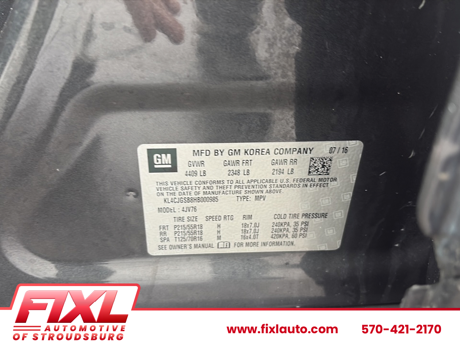VIN KL4CJGSB8HB000985