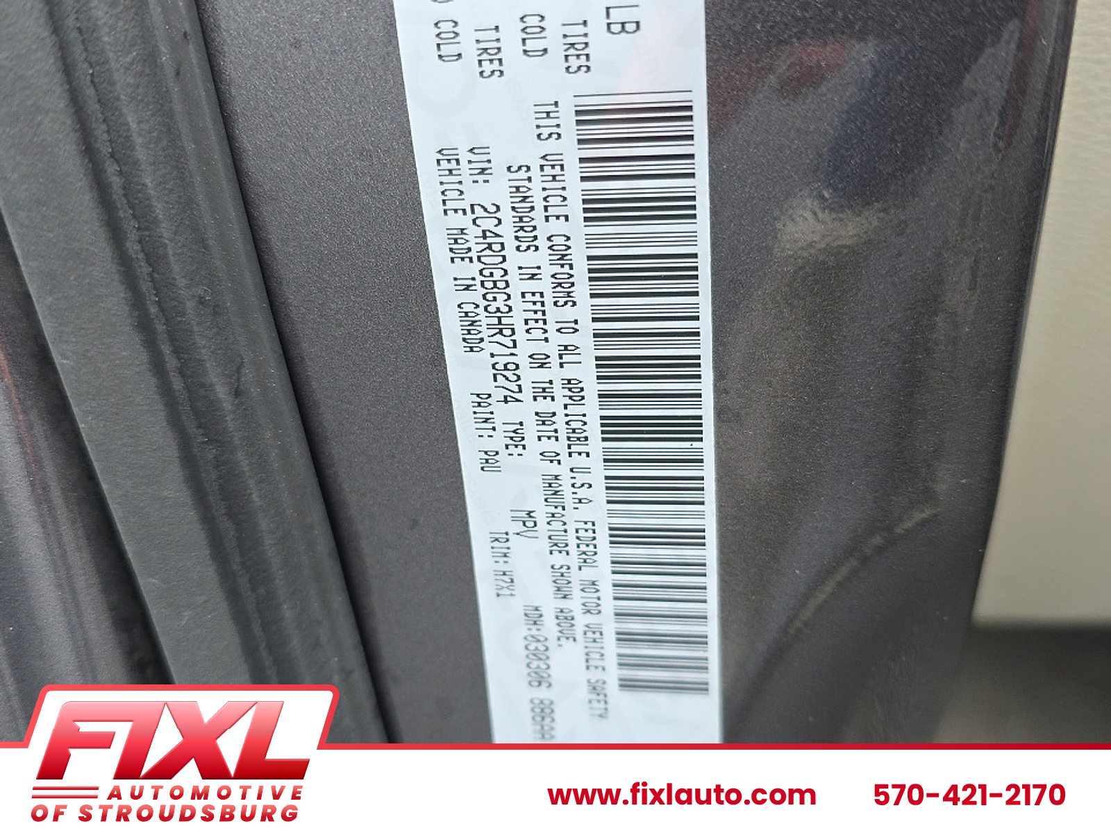 VIN 2C4RDGBG3HR719274