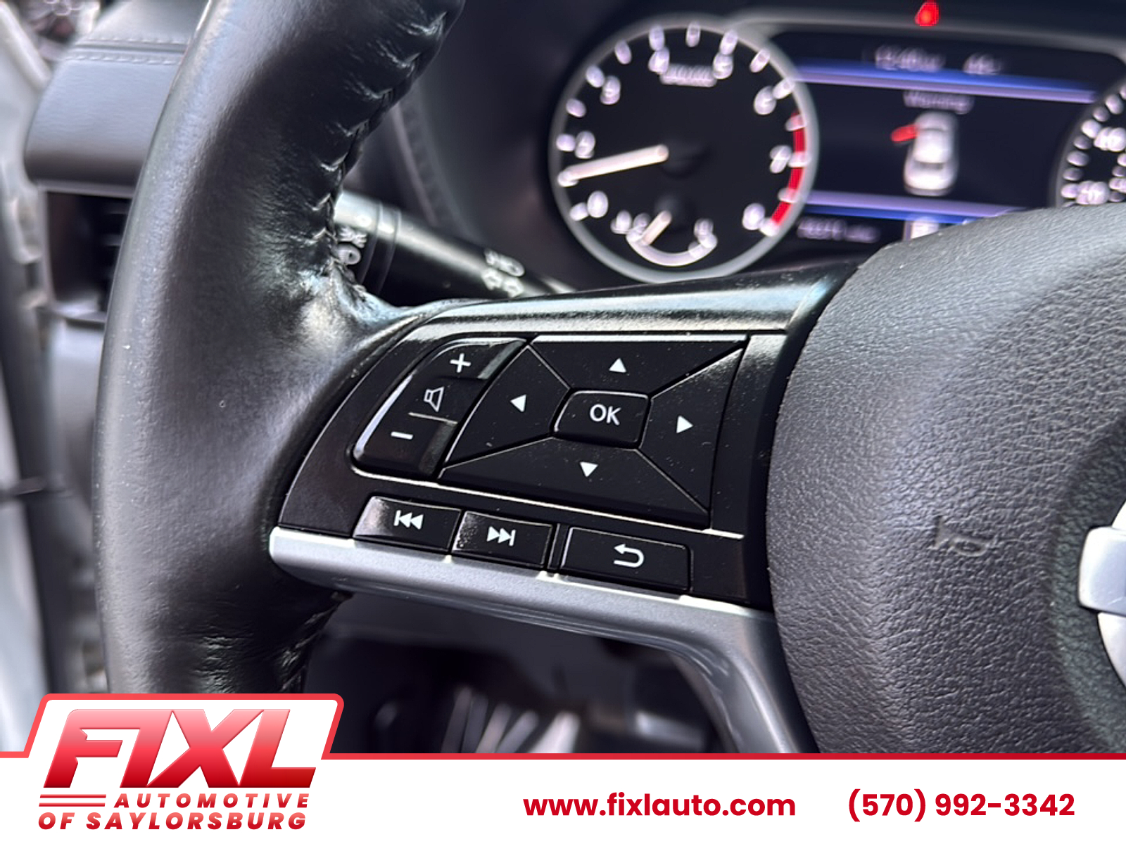 - Leather and metal-look steering wheel
